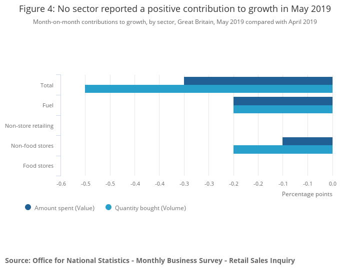 Figure 4: No sector reported a positive contribution to growth in May 2019
