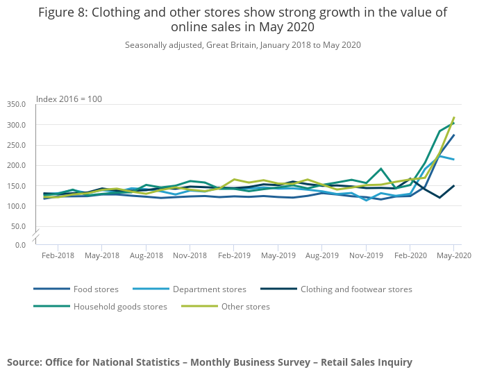 Figure 8: Clothing and other stores show strong growth in the value of online sales in May 2020