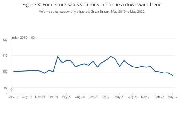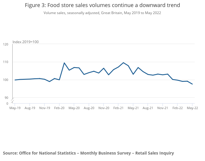 Figure 3: Food store sales volumes continue a downward trend