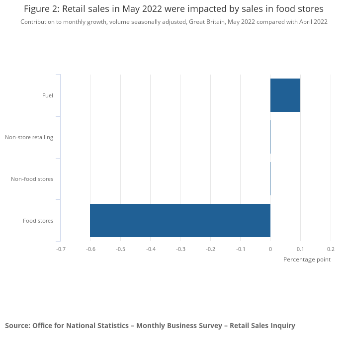 Figure 2: Retail sales in May 2022 were impacted by sales in food stores