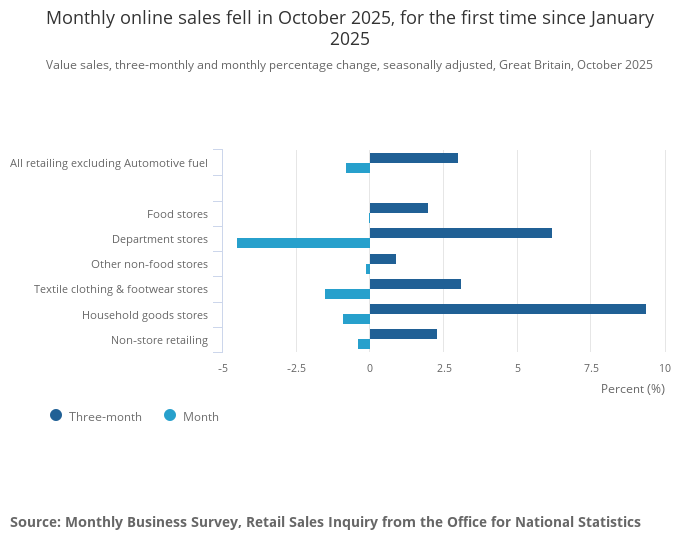 Monthly online sales fell in October 2025, for the first time since January 2025