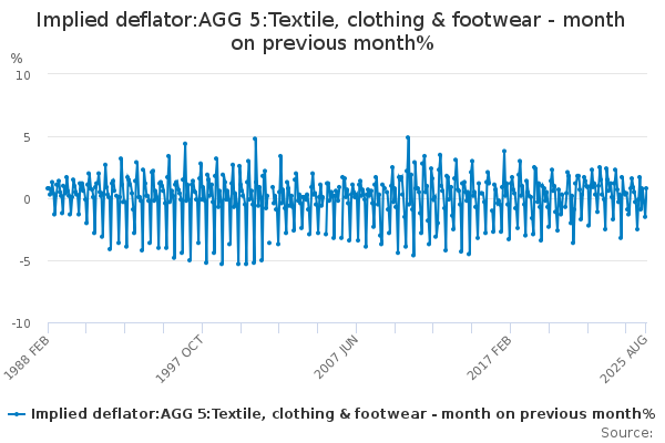 Download this time seriesImplied deflator:AGG 5:Textile, clothing & footwear - month on previous month%