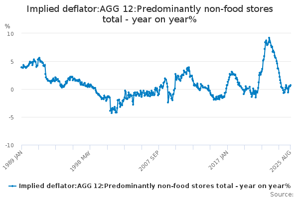 Download this time seriesImplied deflator:AGG 12:Predominantly non-food stores total - year on year%