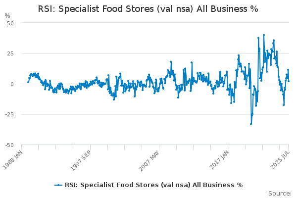 Download this time seriesRSI: Specialist Food Stores (val nsa) All Business %