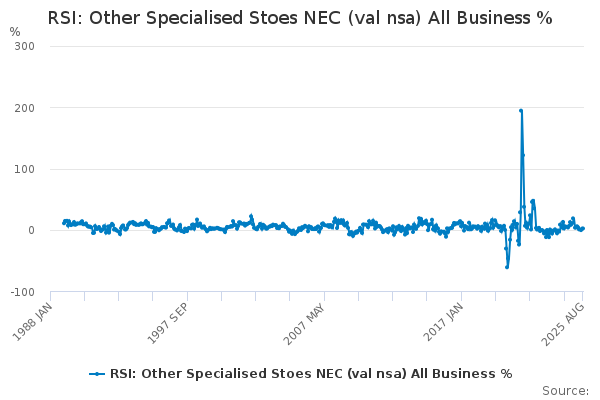 Download this time seriesRSI: Other Specialised Stoes NEC (val nsa) All Business %