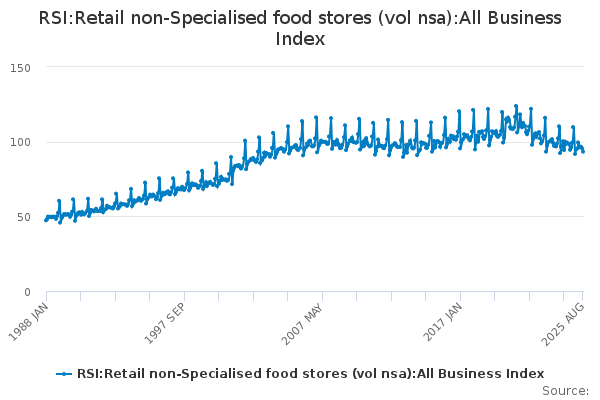 Download this time seriesRSI:Retail non-Specialised food stores (vol nsa):All Business Index