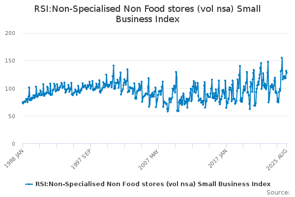 Download this time seriesRSI:Non-Specialised Non Food stores (vol nsa) Small Business Index
