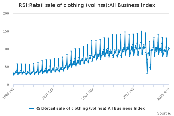 Download this time seriesRSI:Retail sale of clothing (vol nsa):All Business Index