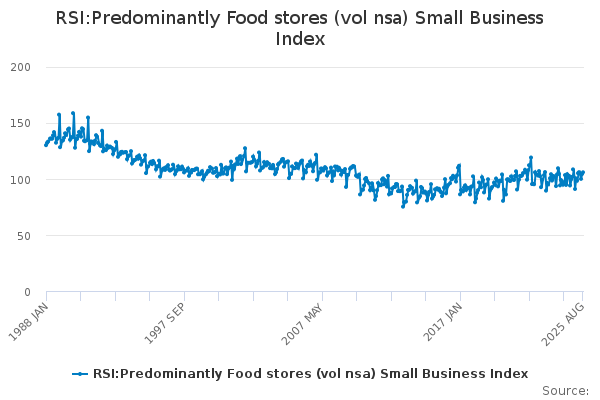 Download this time seriesRSI:Predominantly Food stores (vol nsa) Small Business Index