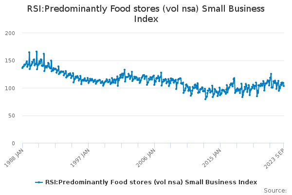 Download this time seriesRSI:Predominantly Food stores (vol nsa) Small Business Index