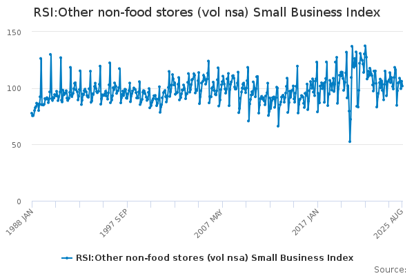 Download this time seriesRSI:Other non-food stores (vol nsa) Small Business Index