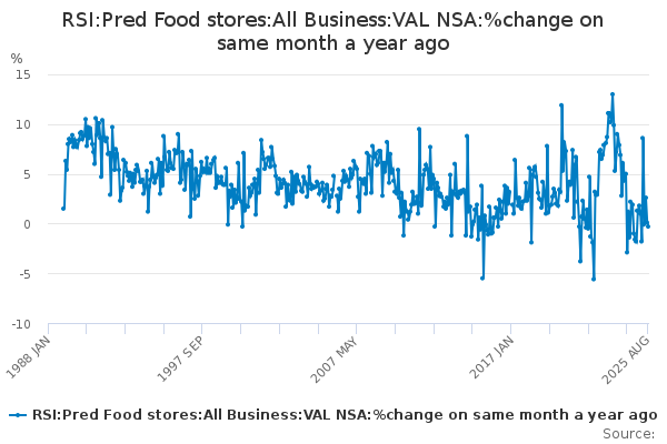 Download this time seriesRSI:Pred Food stores:All Business:VAL NSA:%change on same month a year ago