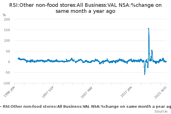 Download this time seriesRSI:Other non-food stores:All Business:VAL NSA:%change on same month a year ago