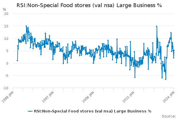 Download this time seriesRSI:Non-Special Food stores (val nsa) Large Business %