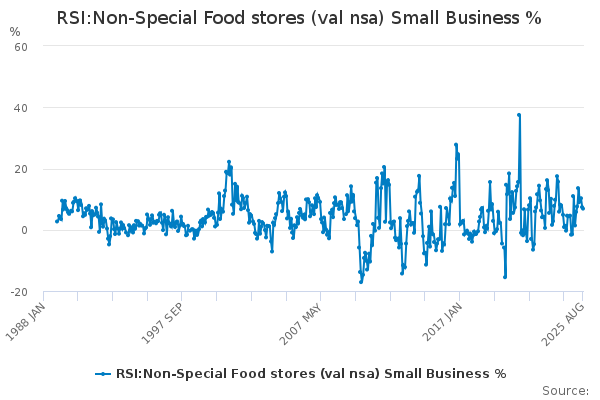 Download this time seriesRSI:Non-Special Food stores (val nsa) Small Business %