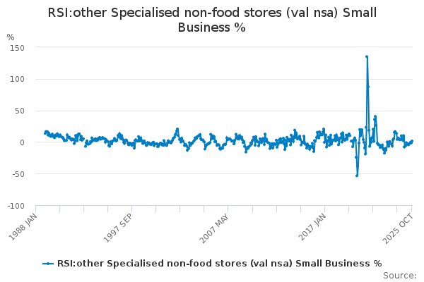 Download this time seriesRSI:other Specialised non-food stores (val nsa) Small Business %