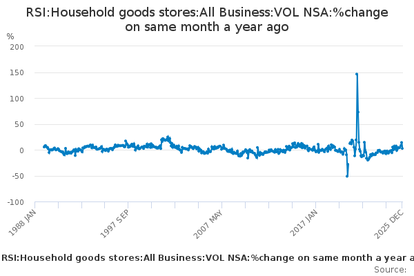 Download this time seriesRSI:Household goods stores:All Business:VOL NSA:%change on same month a year ago