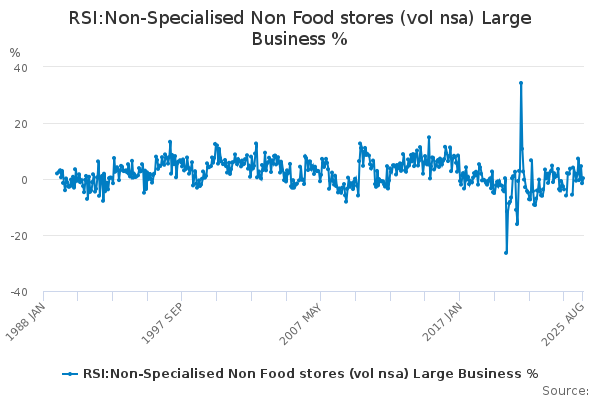 Download this time seriesRSI:Non-Specialised Non Food stores (vol nsa) Large Business %