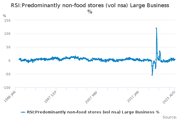 Download this time seriesRSI:Predominantly non-food stores (vol nsa) Large Business %