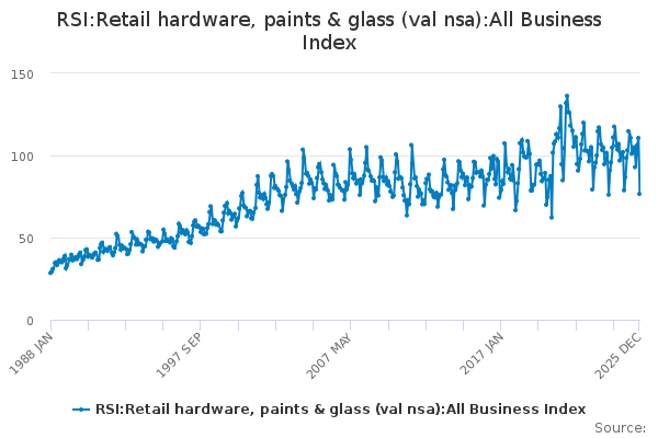 Download this time seriesRSI:Retail hardware, paints & glass (val nsa):All Business Index