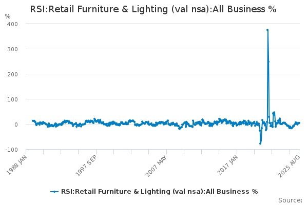 Download this time seriesRSI:Retail Furniture & Lighting (val nsa):All Business %