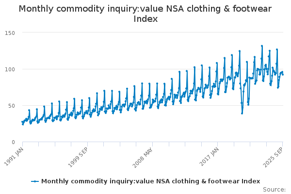 Download this time seriesMonthly commodity inquiry:value NSA clothing & footwear Index