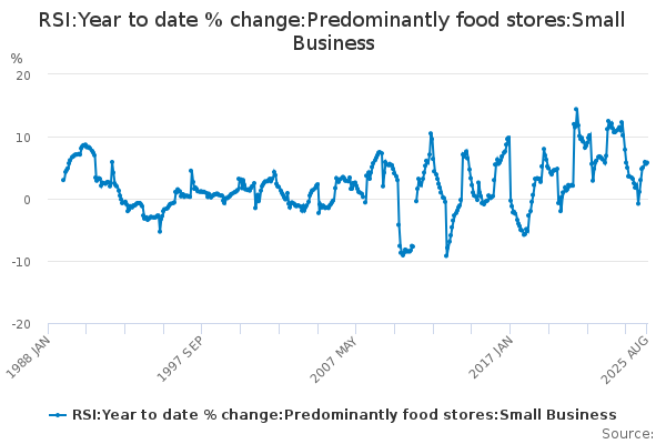 Download this time seriesRSI:Year to date % change:Predominantly food stores:Small Business