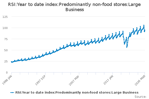 Download this time seriesRSI:Year to date index:Predominantly non-food stores:Large Business