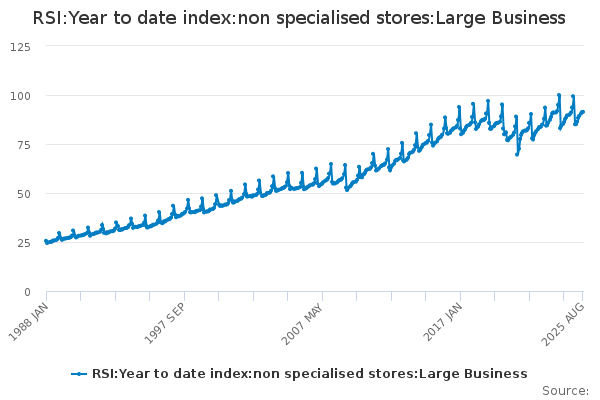 Download this time seriesRSI:Year to date index:non specialised stores:Large Business