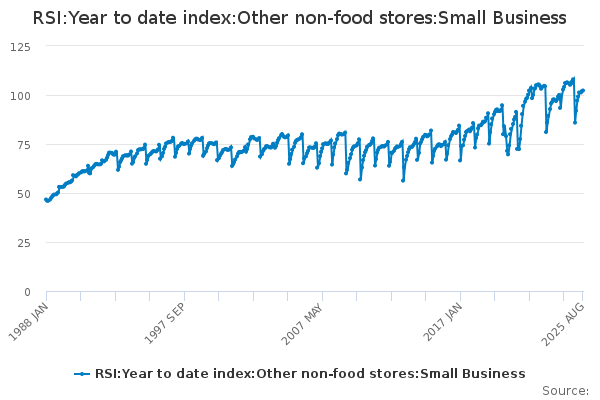 Download this time seriesRSI:Year to date index:Other non-food stores:Small Business