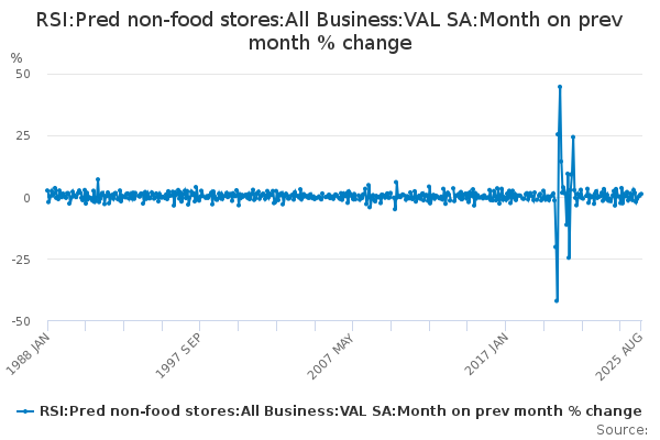 Download this time seriesRSI:Pred non-food stores:All Business:VAL SA:Month on prev month % change