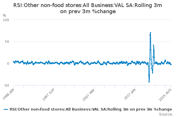 Download this time seriesRSI:Other non-food stores:All Business:VAL SA:Rolling 3m on prev 3m %change