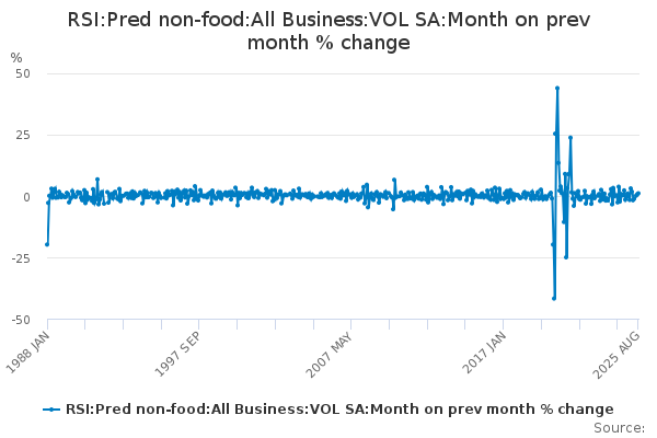 Download this time seriesRSI:Pred non-food:All Business:VOL SA:Month on prev month % change