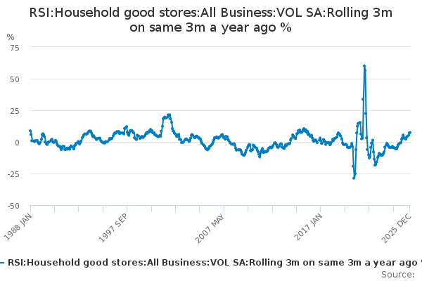 Download this time seriesRSI:Household good stores:All Business:VOL SA:Rolling 3m on same 3m a year ago %