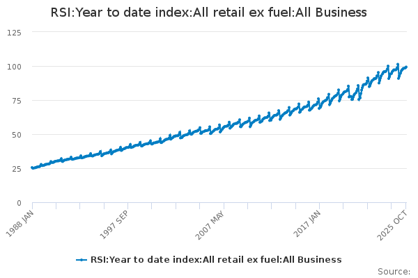 Download this time seriesRSI:Year to date index:All retail ex fuel:All Business