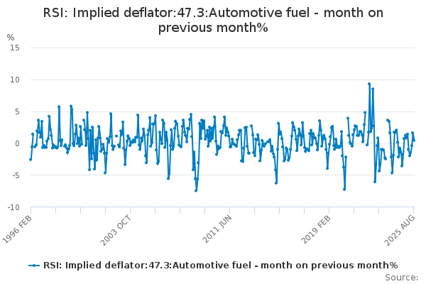 Download this time seriesRSI: Implied deflator:47.3:Automotive fuel - month on previous month%