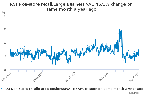Download this time seriesRSI:Non-store retail:Large Business:VAL NSA:% change on same month a year ago