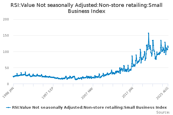 Download this time seriesRSI:Value Not seasonally Adjusted:Non-store retailing:Small Business Index