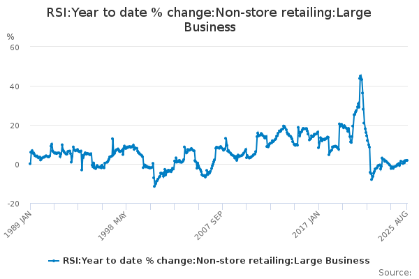 Download this time seriesRSI:Year to date % change:Non-store retailing:Large Business