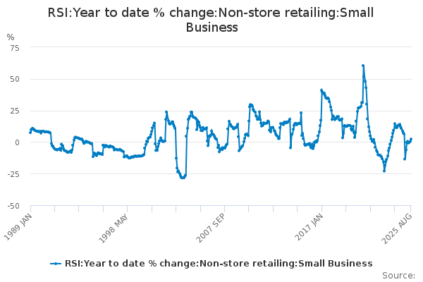 Download this time seriesRSI:Year to date % change:Non-store retailing:Small Business