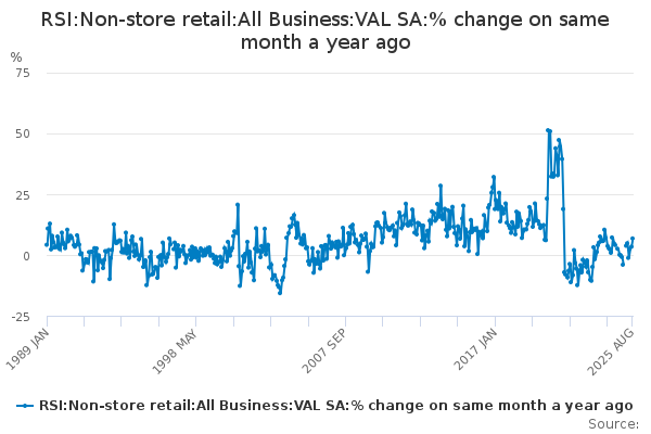 Download this time seriesRSI:Non-store retail:All Business:VAL SA:% change on same month a year ago