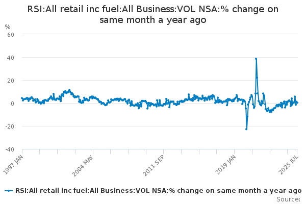 Download this time seriesRSI:All retail inc fuel:All Business:VOL NSA:% change on same month a year ago