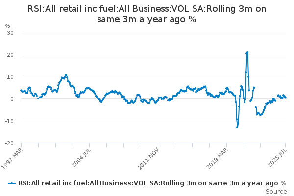 Download this time seriesRSI:All retail inc fuel:All Business:VOL SA:Rolling 3m on same 3m a year ago %