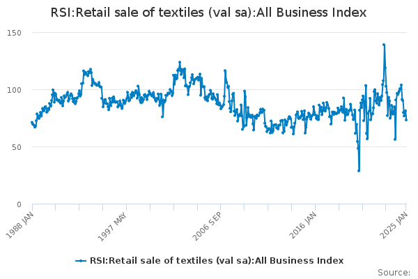 Download this time seriesRSI:Retail sale of textiles (val sa):All Business Index