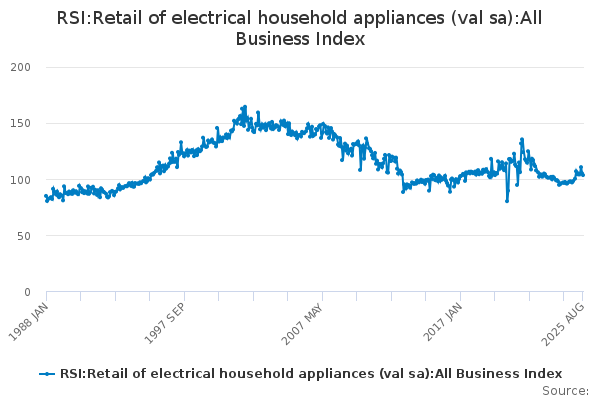 Download this time seriesRSI:Retail of electrical household appliances (val sa):All Business Index