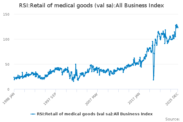 Download this time seriesRSI:Retail of medical goods (val sa):All Business Index