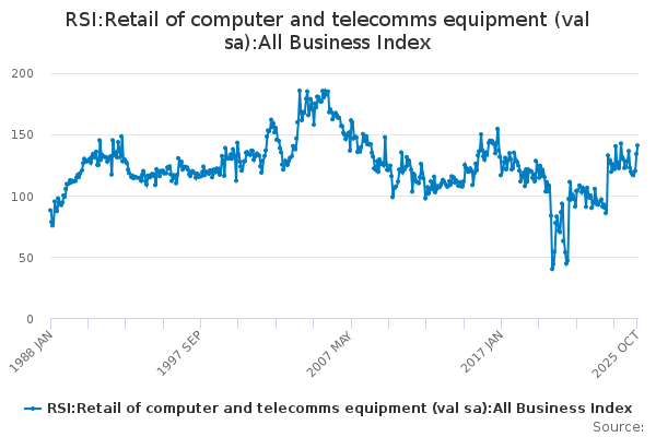 Download this time seriesRSI:Retail of computer and telecomms equipment (val sa):All Business Index