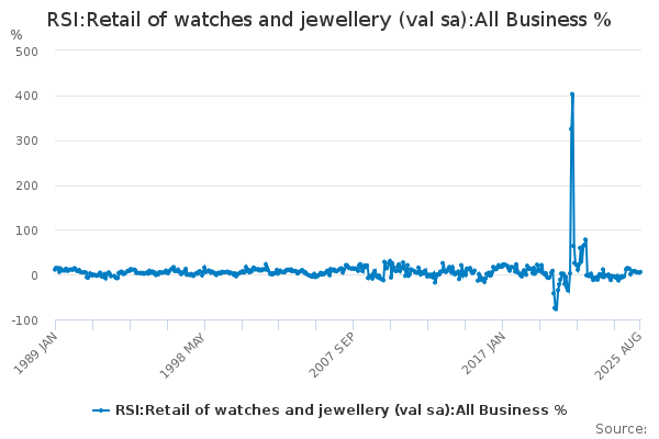 Download this time seriesRSI:Retail of watches and jewellery (val sa):All Business %