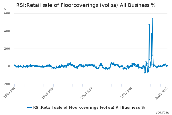 Download this time seriesRSI:Retail sale of Floorcoverings (vol sa):All Business %
