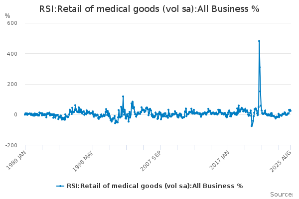 Download this time seriesRSI:Retail of medical goods (vol sa):All Business %
